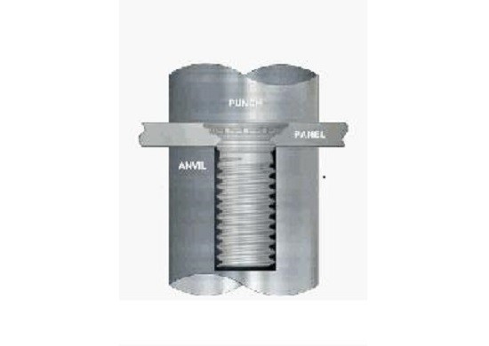 原理是將壓花齒壓入金屬板的預設孔位置。通常,預設孔的直徑略小于鉚螺母的壓花齒。鉚螺母的凹痕通過壓力被壓入板中,從而引起孔的變形。在其周圍發(fā)生塑性變形,并且變形的物體被擠壓到引導槽中,從而產(chǎn)生鎖定效果。與其他方法相比,它具有直接安裝的優(yōu)點,可以大大提高效率,減少螺釘和螺母在金屬板上的敲擊,減少零件數(shù)量等。精度比敲擊要高很多。